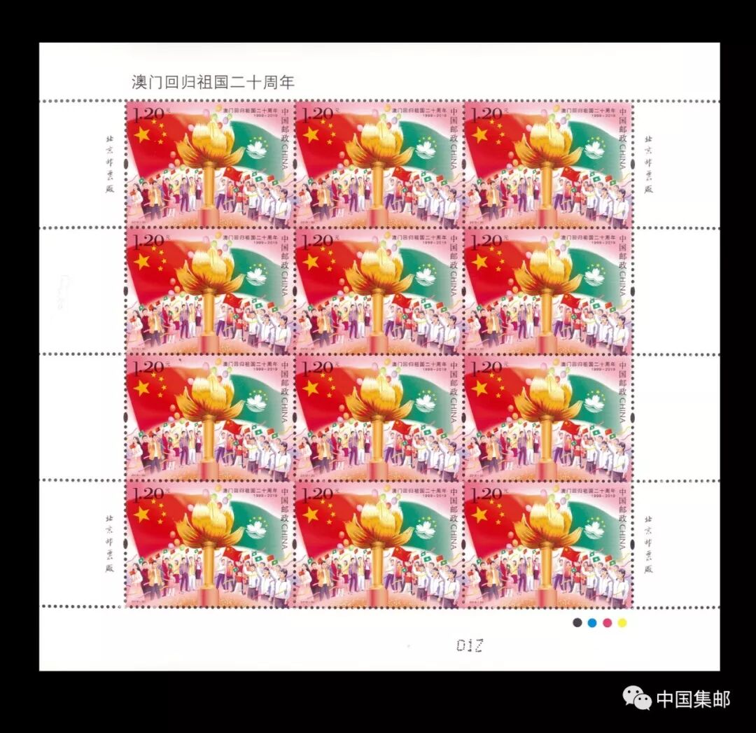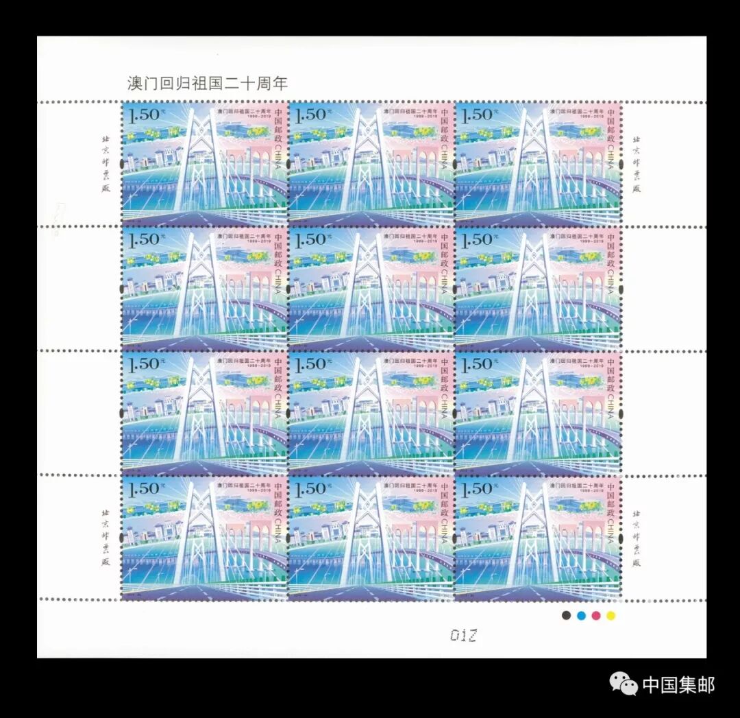 《澳门回归祖国二十周年》纪念邮票整版3-1