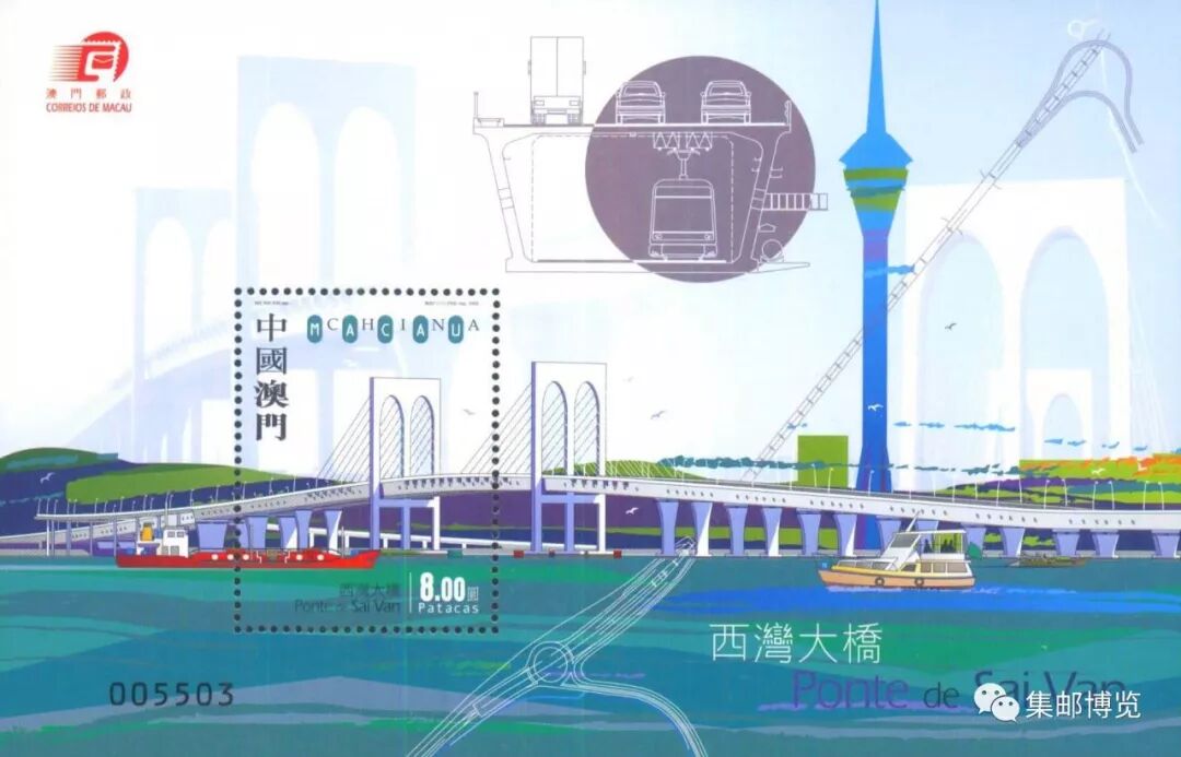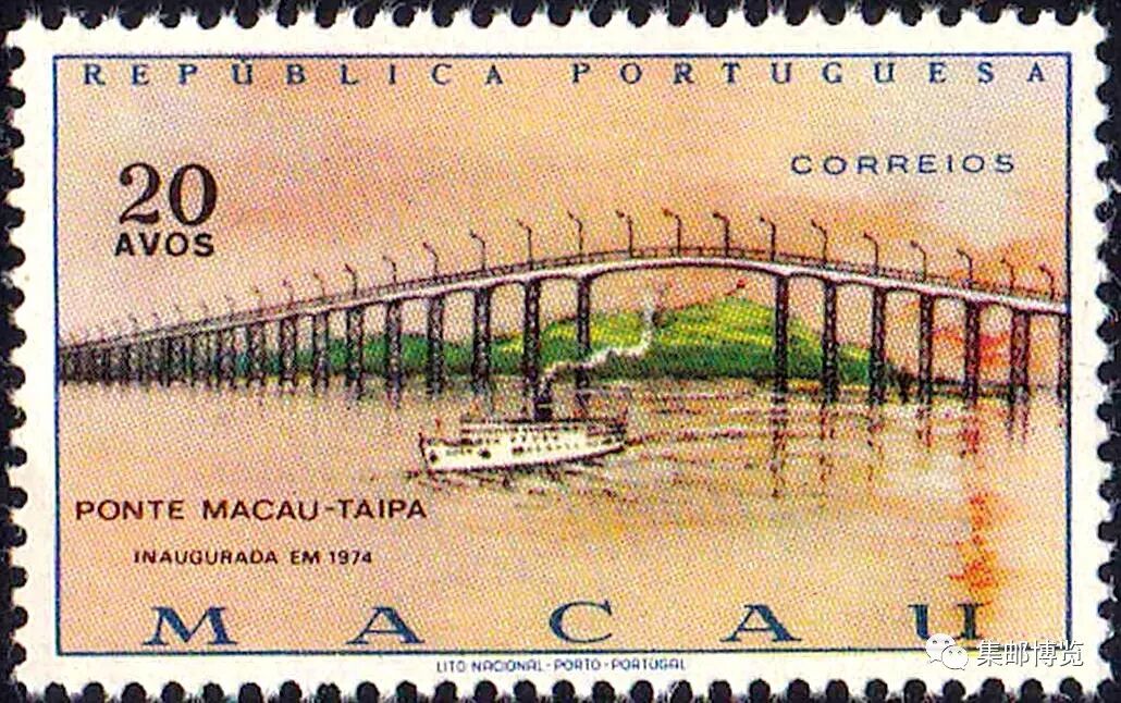 在大规模填海前,澳门是由澳门半岛及氹仔、路环两座岛屿组成的。昔日居民只能透过渡轮,往来于澳门与两座岛屿之间。随着社会的快速发展以及振兴旅游业的需要,澳葡当局加大了对基础设施的投入,于1970年6月动工兴建嘉乐庇总督大桥,也就是大家俗称的“澳氹大桥”。澳氹大桥北接澳门半岛的亚马喇圆形地,南连氹仔小潭山北麓,全长2569米。经过4年施工,大桥于1974年10月5日建成通车,澳门邮电司发行邮票以示纪念。每当夜幕降临,澳氹大桥灯光璀璨,与南湾一带的夜景融为一体,而此番景致则被印在澳门回归后的首枚小型张边纸上。