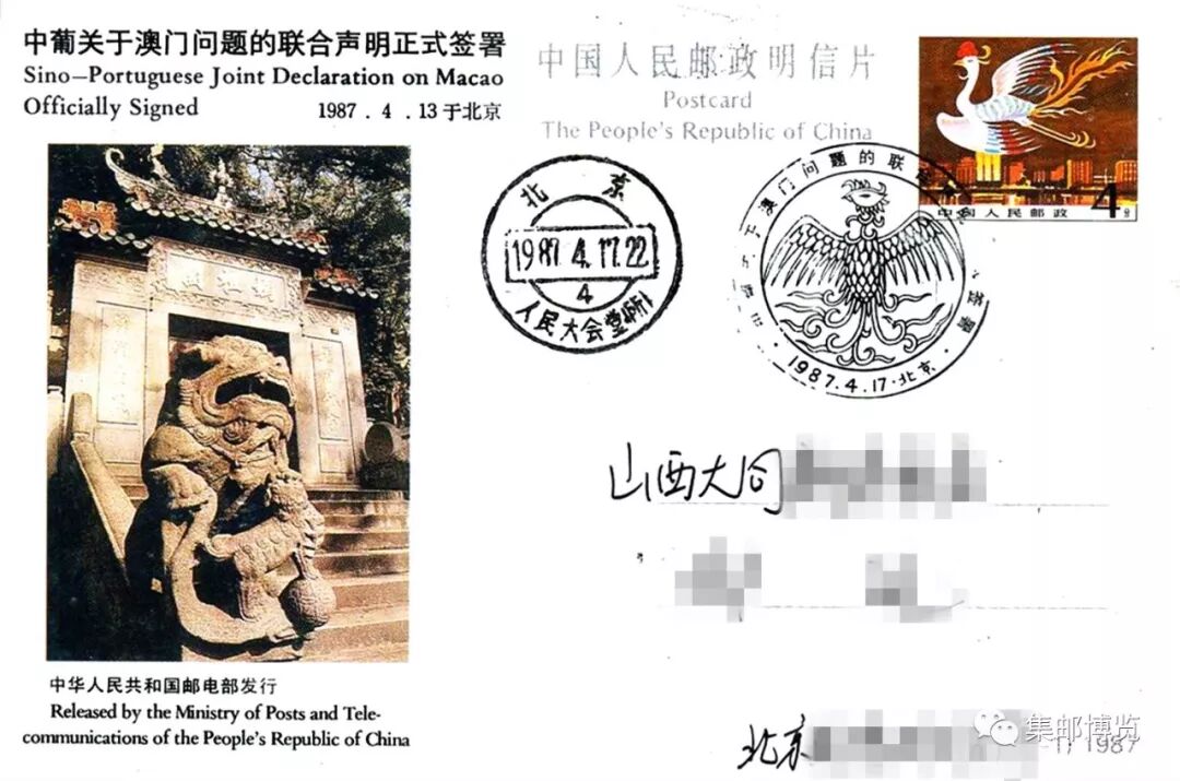 有人说“先有妈阁,后有澳门”。据说当年葡萄牙人抵达澳门时,在妈阁庙附近登陆后,向当地人询问这座城市叫什么名字?居民误以为是问庙宇的名称,便回答“妈阁”。于是葡萄牙人将澳门音译为“Macau”,这一“历史性误会”一直被沿用至今。1987年4月13日,中葡两国在北京签署《中葡联合声明》,我国邮电部于4天后发行了1套2枚的纪念邮资明信片,其中第一枚以妈阁庙大门与镇门的石狮作主图——这是首处荣登我国内地邮资票品的澳门景观。