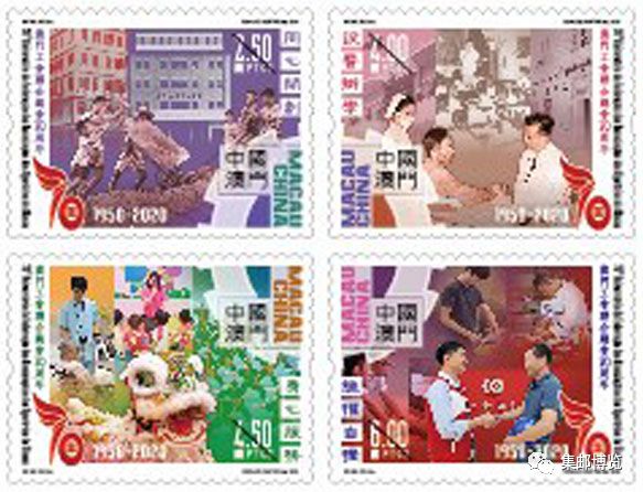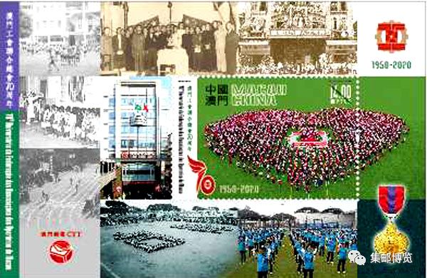2020年1月20日,发行《澳门工会联合总会七十周年》邮票1套4枚,面值分别为2.50圆、4.00圆、4.50圆、6.00圆。同时推出小型张1枚,面值14.00圆。