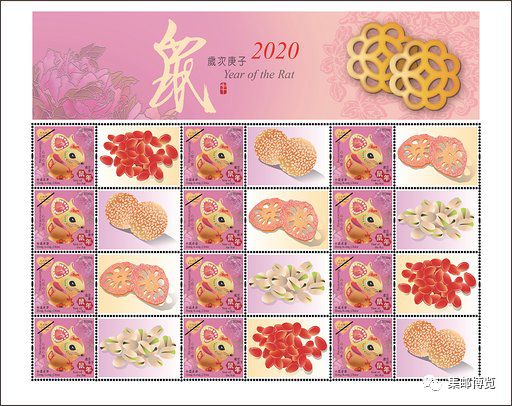 2020年1月5日,发行《鼠年》邮票1套4枚,面值分别为2.50圆、4.00圆、4.50圆、6.00圆。同时推出小型张1枚,面值14.00圆。