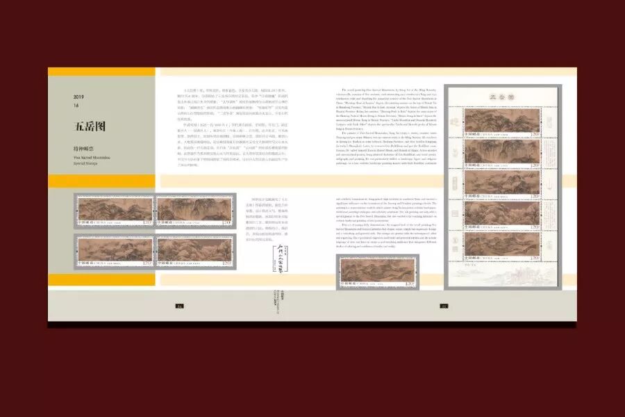册中含有2019年度全年邮票发行背景资料、每一枚邮票图稿解读,每一套邮票选题、设计、雕刻、印制背后的故事。