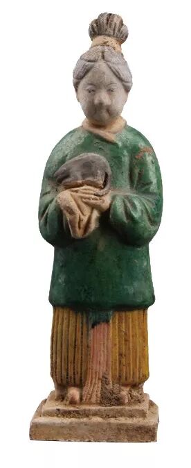 三彩抱鼠女立俑〔明〕