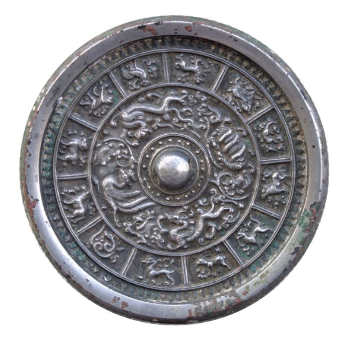 到了隋代,铜镜的纹饰中便有了十二生肖的动物形象,它们以写实的风格、环形装饰的形式出现在铜镜上。