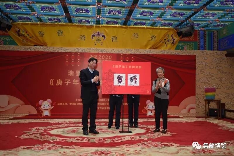 原中国邮电工会主席、中华全国集邮联合会原会长、全国劳动模范罗淑珍和北京市邮政公司副总经理范小荣为《庚子年》特种邮票揭幕。