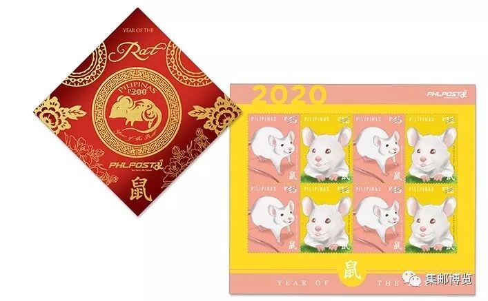 2019年12月13日,菲律宾邮政发行一套农历生肖鼠年邮票,包括一枚小型张和两枚邮票,其中小型张图案加印金箔,充分体现金鼠年的特点。这套邮票由菲律宾邮政的Rodine C. Teodoro设计,邮票和小型张都带有中文的“鼠”字。