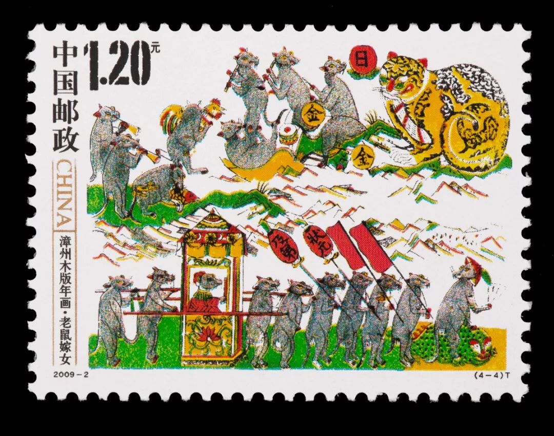 在我国,十二生肖鼠为首,鼠文化丰富多彩。山东潍县以及江浙间作坊都流行《老鼠娶亲》等年画题材。这些年画以浓墨画鼠,衬以红绿黄等重彩,让鼠儿沉浸在喜气洋洋的生活情趣之中。