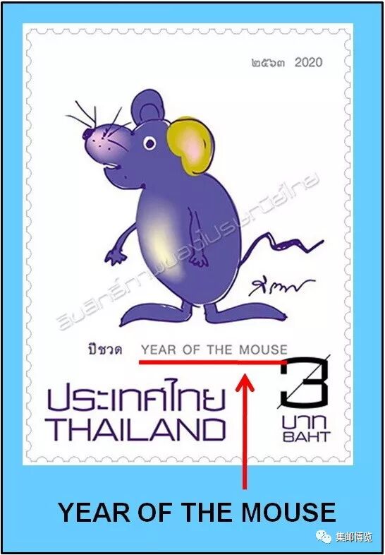 于2020年1月2日发行《鼠年》邮票一套1枚(附图为图样,邮票图案由诗琳通公主亲自绘制)。票图中印的也是“YEAR OF THE MOUSE 2020”——