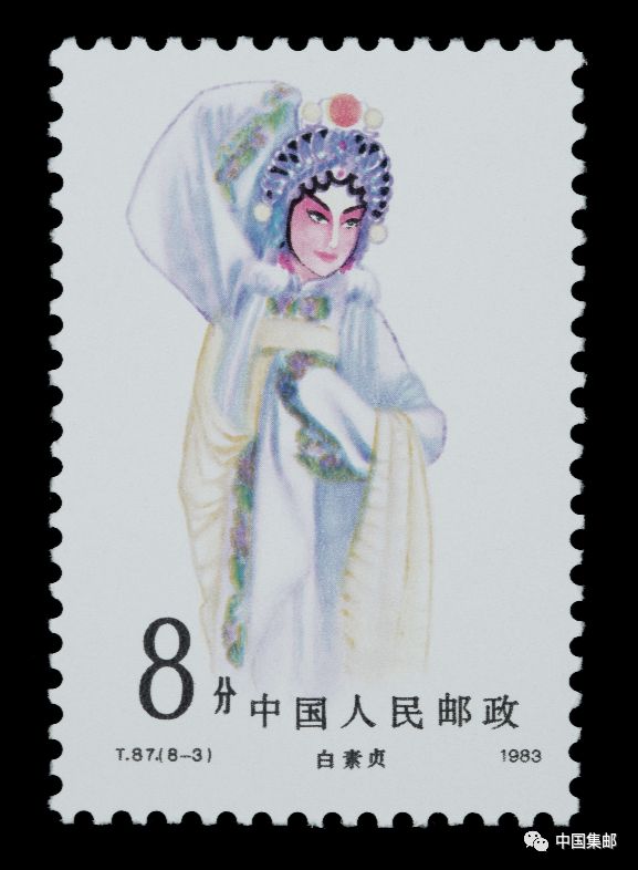 1983年,中国邮政发行了T.87 《京剧旦角》特种邮票1套8枚,邮票画面分别为:《拾玉镯》里的角色孙玉姣、《秋江》中的人物陈妙常、《白蛇传》中的角色白素贞、《十三妹》中的刀马旦十三妹、《秦香莲》中的秦香莲、《贵妃醉酒》中的杨贵妃、《西厢记》中的主角崔莺莺、《穆桂英》中的刀马旦穆桂英。