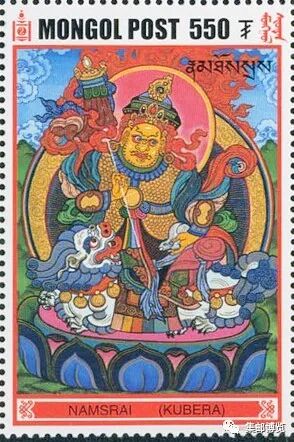 鼠的“财神”地位也影响到了宗教,如道家的虚日鼠、佛家的吐宝鼠都是吐财之物,成为招财进宝的瑞兽。在寺院中一般都立有四大护法天王,其中北方多闻天王右手拿着一把象征着风调雨顺的雨伞,而他的左手则拿着一只神鼠,这只神鼠叫吐宝鼠,能赐予无尽的财宝。吐宝鼠不会排泄,不管吃什么都会化为摩尼宝珠从口中吐出来。龙王在观音发愿经中有感观音菩萨的悲心,在观音化现的白财神前发愿供其驱策。随之吐宝鼠也发愿,愿供那些发愿消除众生贫乏的圣尊们驱策,所以变成了各大财神手上的标志物。在藏地各大教派尊奉的五色财神之一的黄财神左手上,就抱着一只老鼠,鼠嘴里含着珠宝,有招财之意。