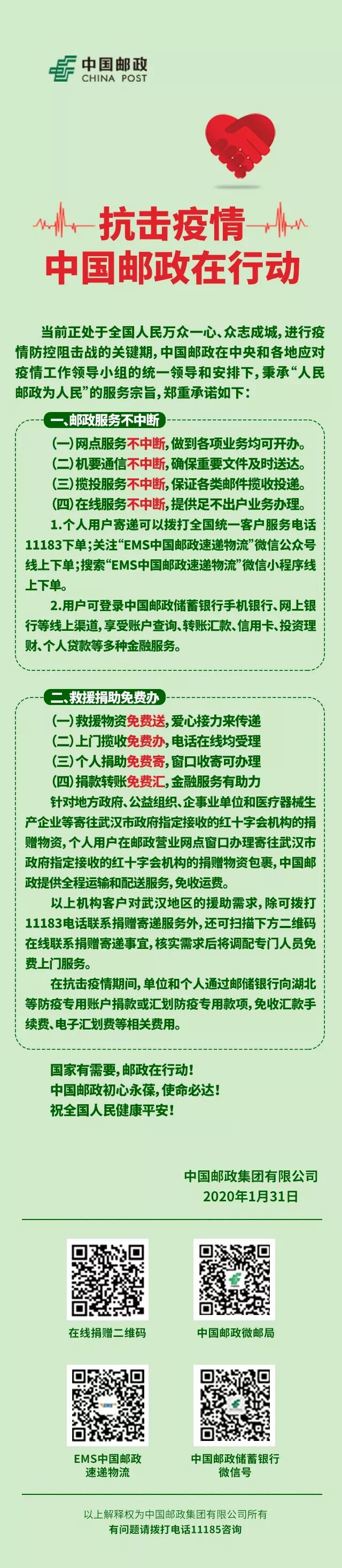 共同战“疫” ,中国邮政带着这些措施来了!