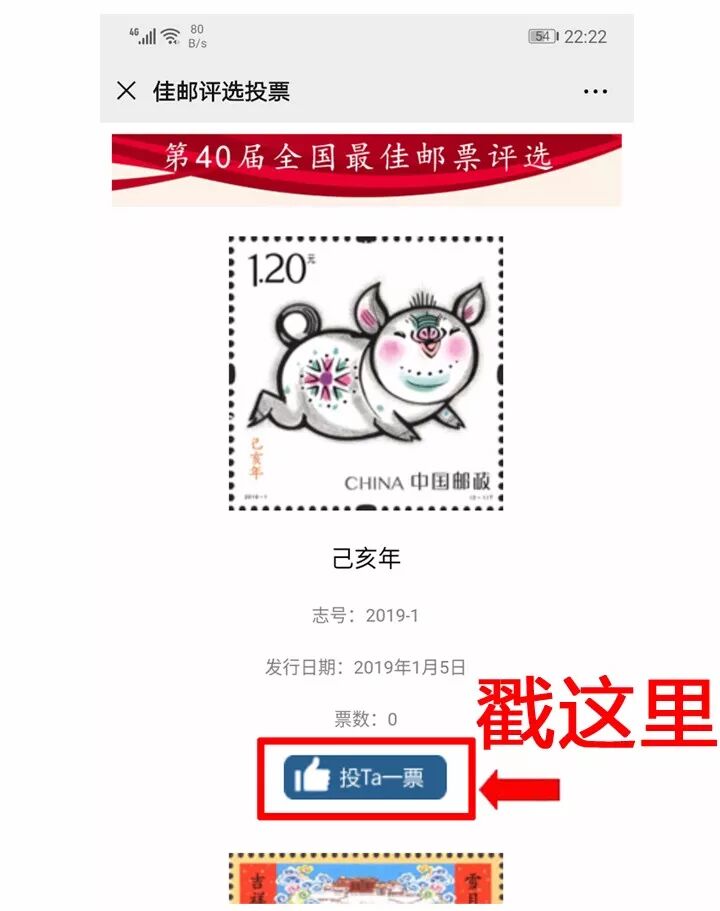“第40届全国最佳邮票评选”正式启动! 全年精美邮票都在等待你珍贵的选票! 记住!我们的投票时间持续月余哦! 喜欢哪一张就为它打call☎吧! 鼠年吉祥 希望能给大家带来愉快的投票体验! 动动手指转发吧,让更多人为你喜欢的邮票打call吧! 中国集邮 | 不仅有集邮的自媒体