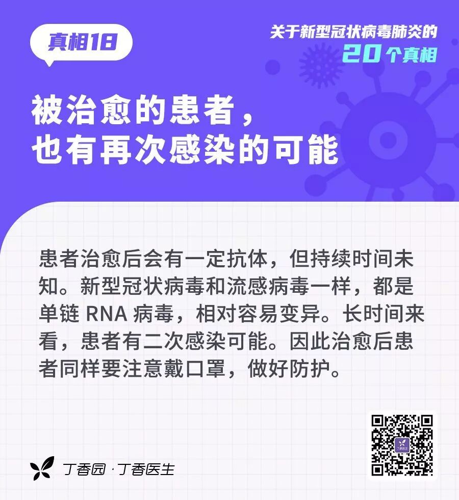 目前,快速变化的疫情让很多人都陷入了焦虑与纠结:收外卖、快递会不会感染?去没有人的地方还要戴口罩吗?宠物也会传播新型冠状病毒吗?下面我们一起来看看“丁香医生”结合国家卫健委印发第四版《新型冠状病毒感染的肺炎诊疗方案》、世界卫生组织的建议,整理的20 个有关新型冠状病毒的真相: