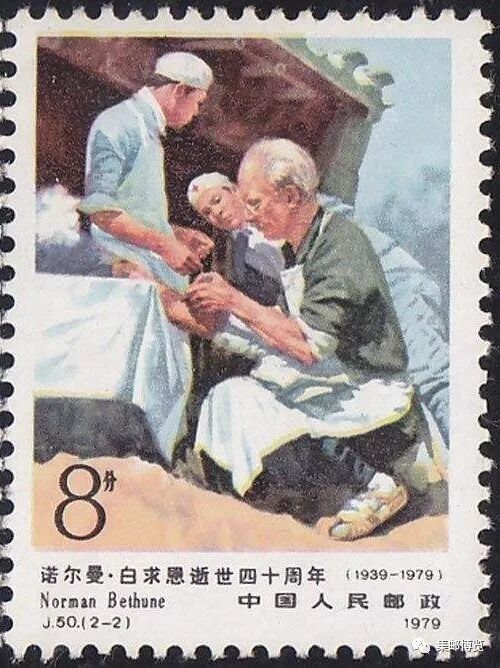 纪84《诺尔曼•白求恩》邮票之“白求恩大夫在抢救伤员”中和《诺尔曼•白求恩逝世四十周年》邮票之“鞠躬尽瘁”中,正在为八路军伤病员进行手术的白求恩大夫及其他医生应该佩戴口罩;
