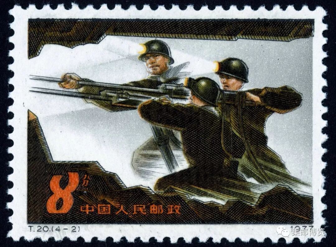 T20《开发矿业》邮票之“掘进尖兵”中,正在矿井中紧张作业的采煤工人们应该佩戴口罩以防止粉尘对人体的伤害。