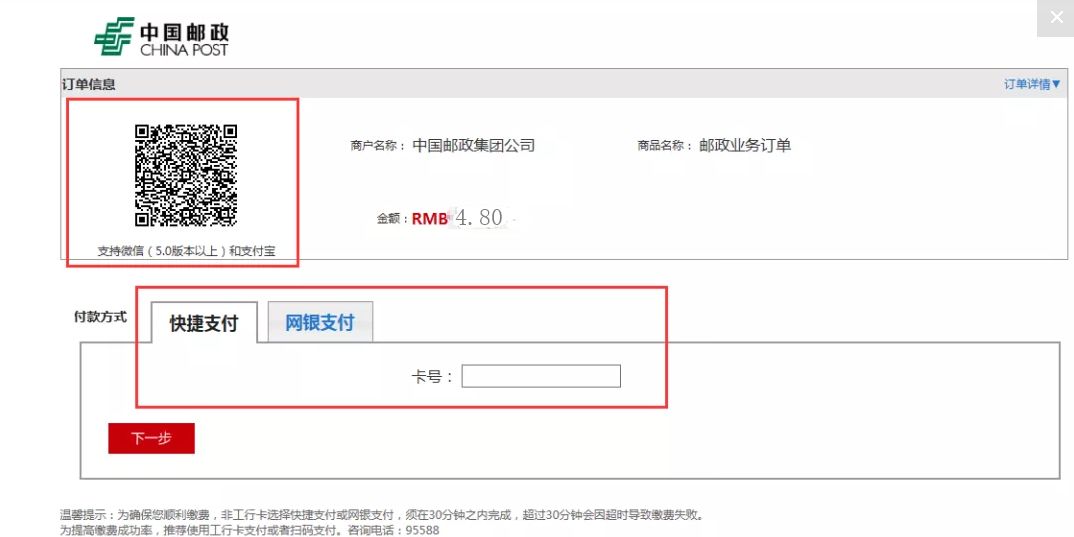 点击按钮进行验证后,选择支付方式,根据指引完成支付。可用微信(5.0以上版本)和支付宝进行扫描支付,也可以用网银支付或者快捷支付。支付后则下单成功。