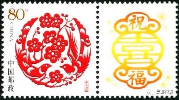 此外,我国于2005年发行的《岁岁平安》、《喜上眉梢》两套个性化服务专用邮票,图案均为吉祥喜庆的剪纸艺术图案。