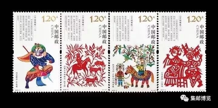 2018年1月24日,中国邮政发行的《中国剪纸(一)》特种邮票一套4枚。画面表现的是我国北方地区极具代表性的河北蔚县“芦花荡”、内蒙古和林格尔“牧羊图”、陕西旬邑“江娃拉马梅香骑”和山西新绛“小别母”4幅剪纸艺术作品。