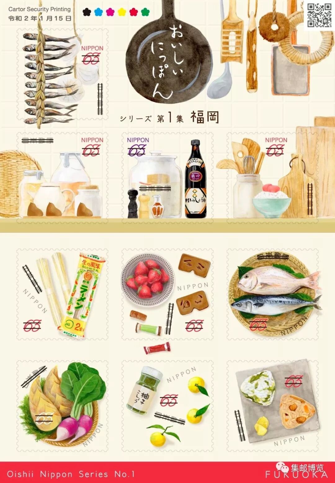 2020年1月15日,日本邮政发行一套《日本美食》系列第一集邮票,主题为福冈地区的美食,一枚小版张表现食材、厨具和调味品等后台,一枚表现最后呈现上桌的美食。