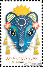 2020年1月11日,美国邮政发行一枚农历生肖鼠年邮票。这是美国邮政的第三轮农历生肖邮票的第一种,也是2020年美国邮政发行的第一套邮票。邮票图案的原创是Camille Chew。这位设计师最喜爱神秘题材,比如女巫。这枚鼠年邮票上没有象以前的生肖系列一样出现中文生肖年字样。