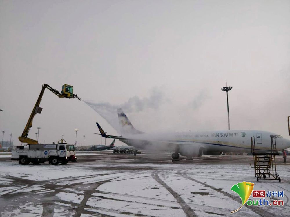 邮航CF9121航班正在进行除冰作业