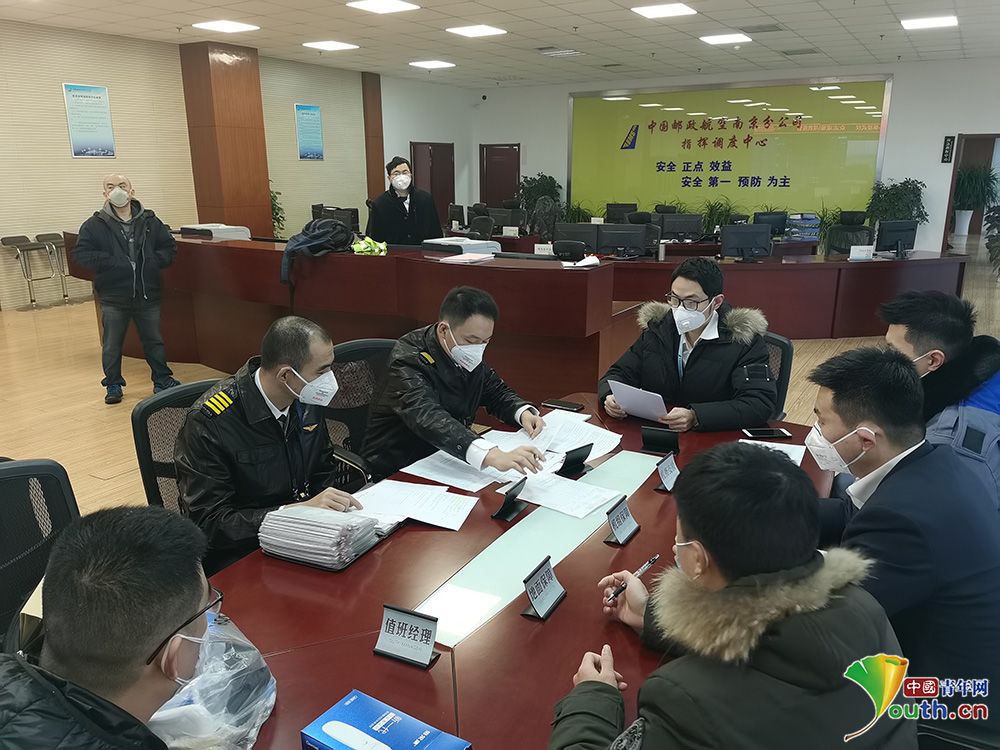 机组成员开会讨论执飞方案