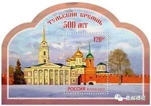 2020年1月21日,俄罗斯邮政发行一枚小型张,庆祝图拉克里姆林宫建成500周年。其确切的翻译应该是图拉内城,于1520年建成。它在长时间充当了抵抗草原游牧民族的堡垒, 其中建有9座钟楼,4座建有宫塔门。该建筑群包括1766年修建的圣母安息大教堂和1855~1862年修建的显圣大教堂。