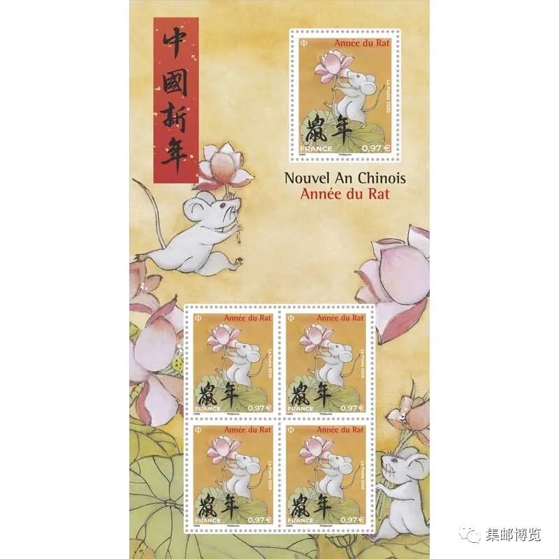 2020年1月20日,法国邮政发行一套两枚农历生肖鼠年邮票。这套邮票还是由法籍华裔画家兼图画书及漫画创作者陈江洪设计,一枚为老鼠嫁女,一枚为老鼠与荷花。陈江洪出生于天津,在北京中央美术学院中国画专科毕业。1988年入读法国巴黎美院,同年在巴黎举行个人画展。从此展开了旅居法国巴黎的画家生涯。他的图画书取材中国民间传说、神话等等,配以简单、儿童方式的插画,让当中的中国文化有了世界性,能够超越国界。他的图画书虽以中国故事为主,却得到了西方孩子的喜爱,并且广受欢迎,更为他带来多个国际奖项。