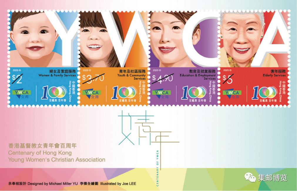 3月10日,发行《香港基督教女青年会百周年》纪念邮票一套4枚,邮票内容及面值分别为:妇女及家庭服务(面值2元)、青年及小区服务(面值3.70元)、教育及就业服务(面值4.90元)、老年服务(面值5元)。同时推出小全张及珍贵邮票小册子各1款。