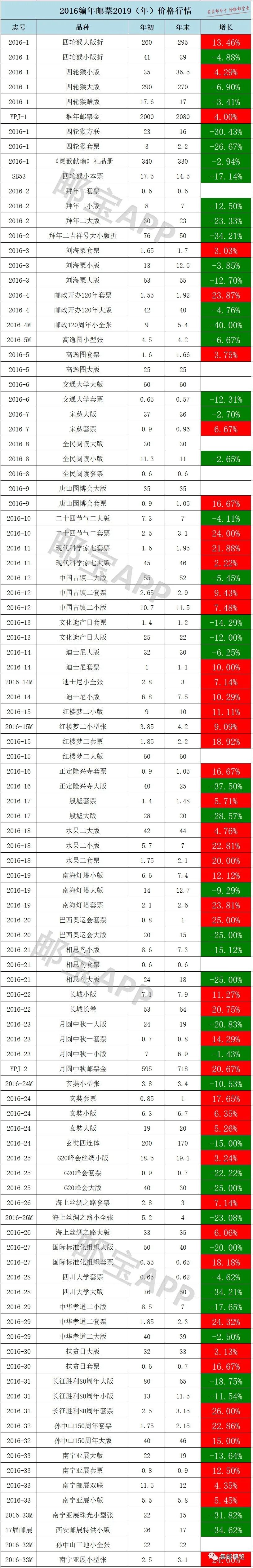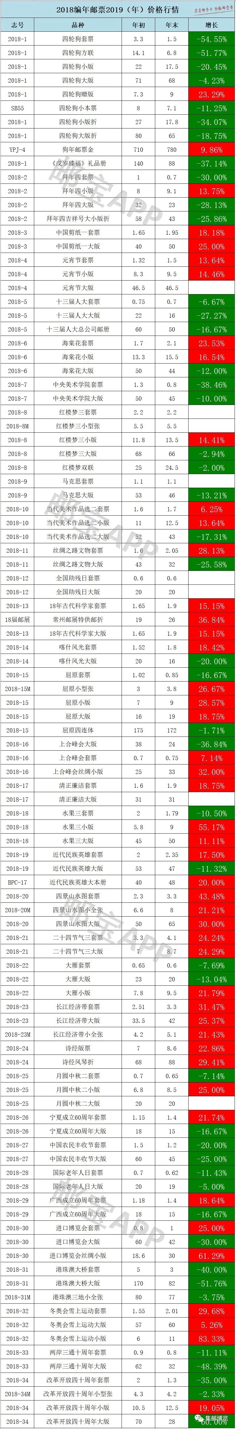 小编为大家整理了自1992年起编年邮票在2019年度的行情对比,已分几期陆续推送,