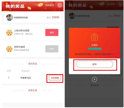 奖品2:5元/10元 代金券