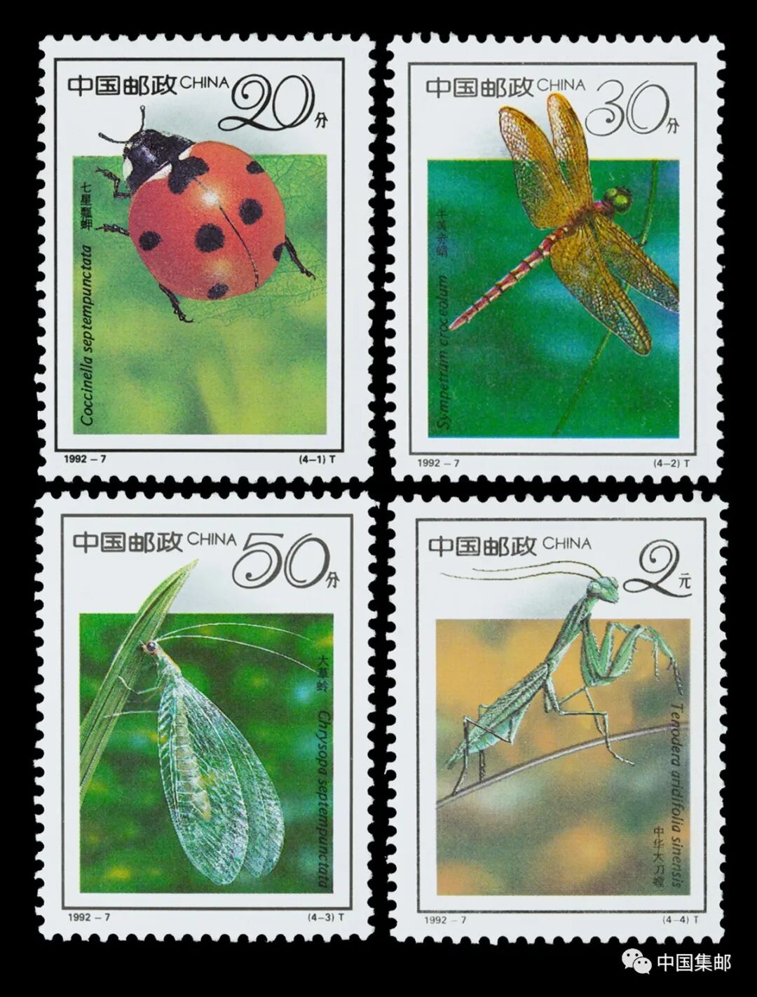 七星瓢虫、半黄赤蜻、大草蛉、中华大刀螳这四种昆虫都是我国著名的捕食性天敌昆虫。天敌昆虫是影响害虫发生数量的重要生物因子,自古以来人们就注重保护天敌昆虫,利用它们防治农林害虫。1992年6月28日,正值第19届国际昆虫学大会在北京召开之际,中国邮政发行了1992-7《昆虫》特种邮票,全套4枚。