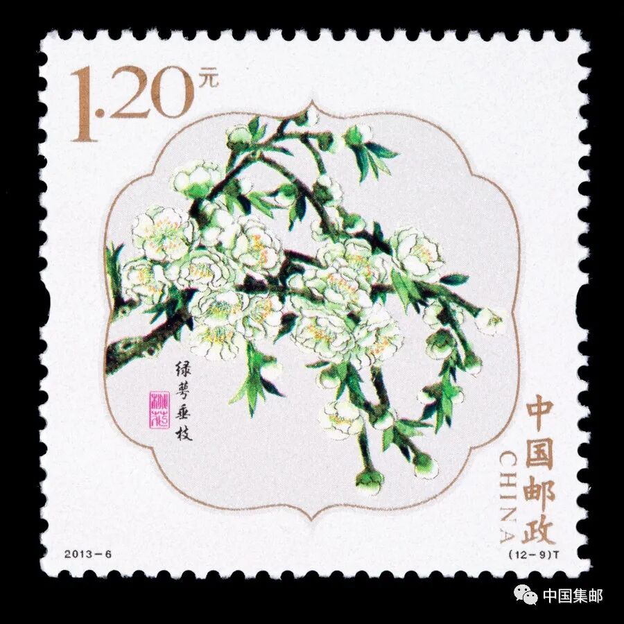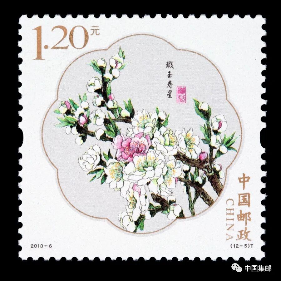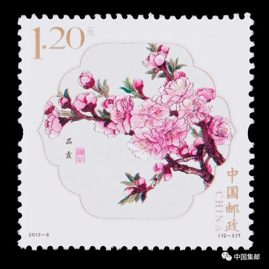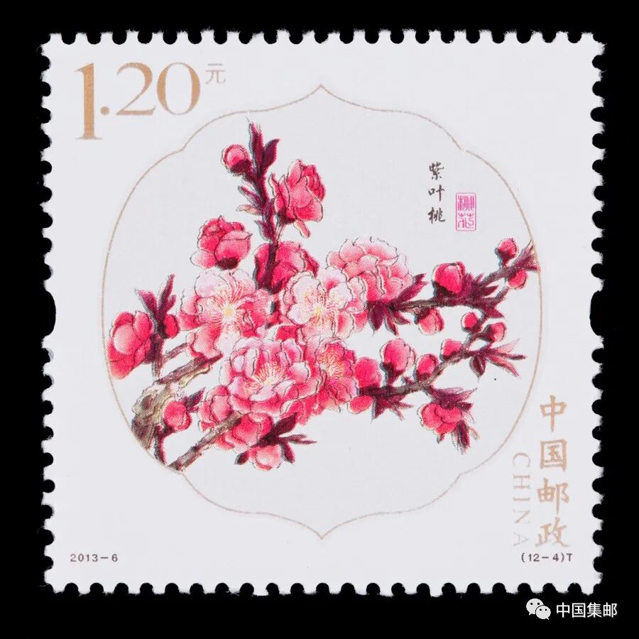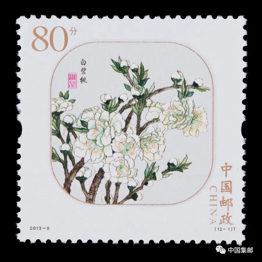 中国邮政曾于2013年3月16日发行2013-6《桃花》特种邮票,全套邮票十二枚,展现白碧桃、单粉、品霞、紫叶桃、瑕玉寿星、碧桃 、五宝桃、照手红、绿萼垂枝、二色桃、菊花桃、绯桃十二个品种的桃花。