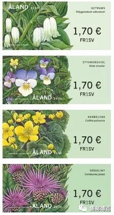 2020年2月3日,奥兰群岛邮政发行一套四枚邮资机邮票,主题为野花,由Carolina Sundelin设计,展现玉竹、三色堇、矢车菊和驴蹄草的迷人风采。