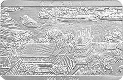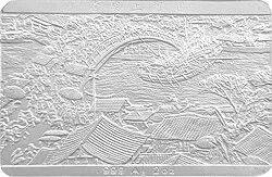 1998年中国人民银行发行了“中国古代名画系列(清明上河图)2盎司长方形银质纪念币”一套,该套纪念币采用6方连张的形式将《清明上河图》这幅长卷名画展现在世人面前。