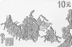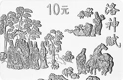 1999年中国人民银行发行了“中国古代名画系列(洛神赋图)1盎司长方形银质纪念币”一套,该套纪念币共8枚。纪念币正面主景均为汉代画像石战车图,8枚银币的背面组合在一起为精微版《洛神赋图》。