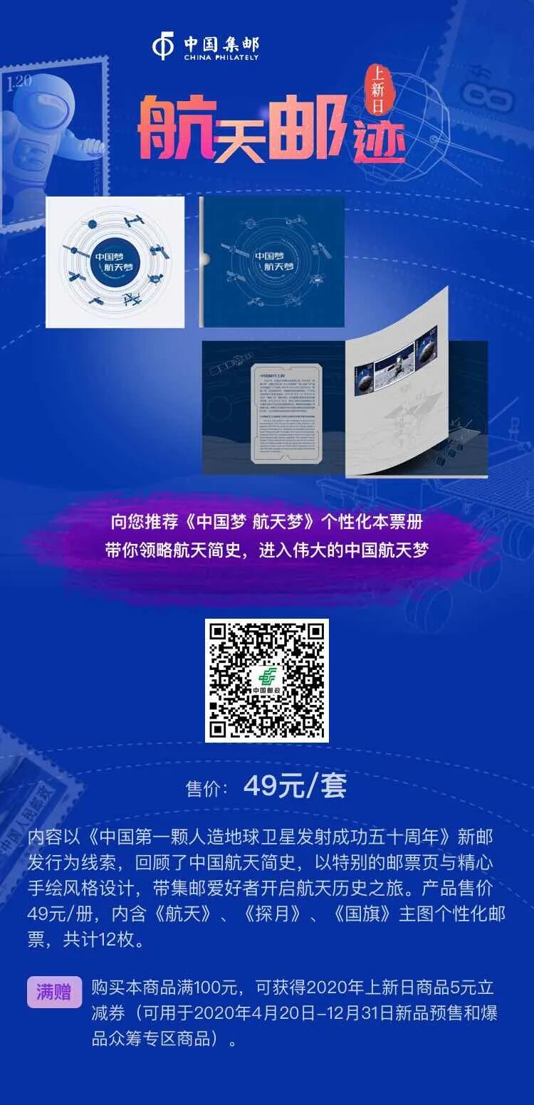《中国梦 航天梦》个性化邮票本册以《中国第一颗人造地球卫星发射成功五十周年》新邮发行为线索,回顾了中国航天简史,将中国航天的高光时刻记录在方寸之间。