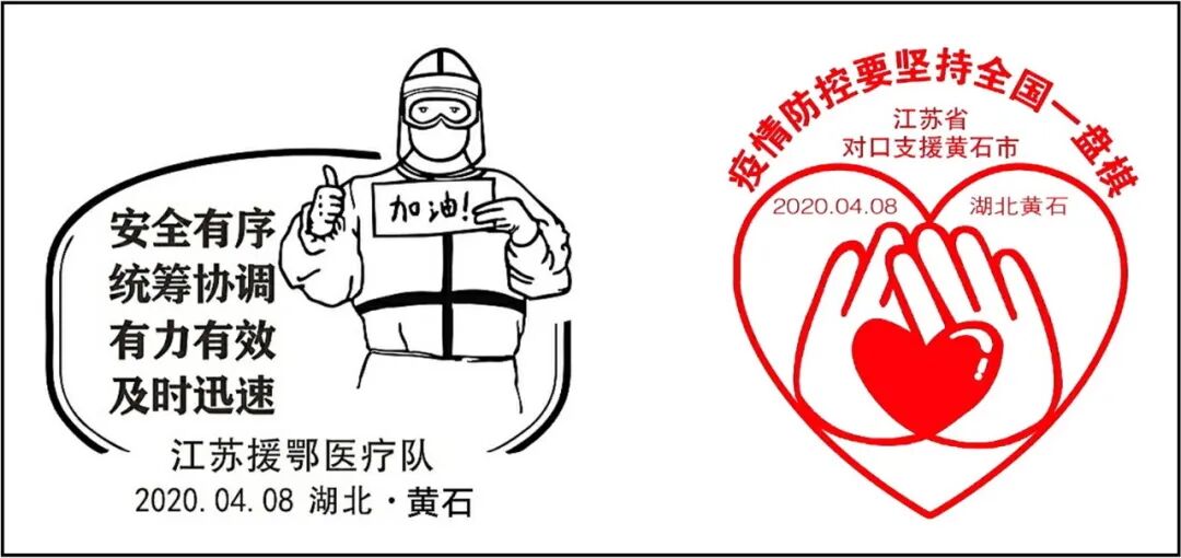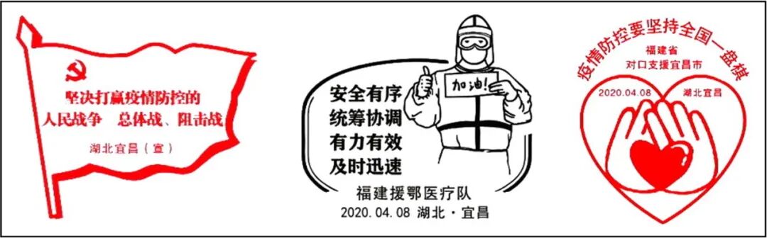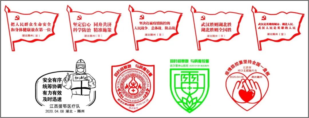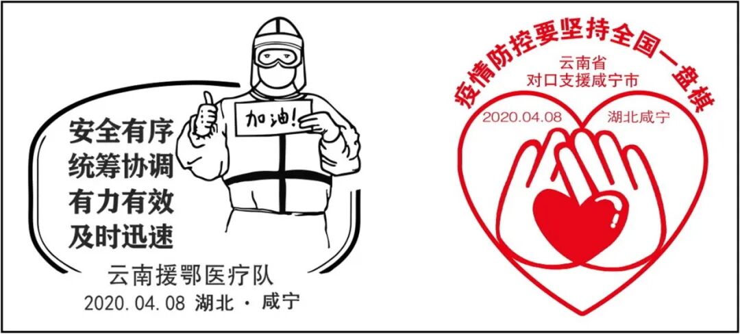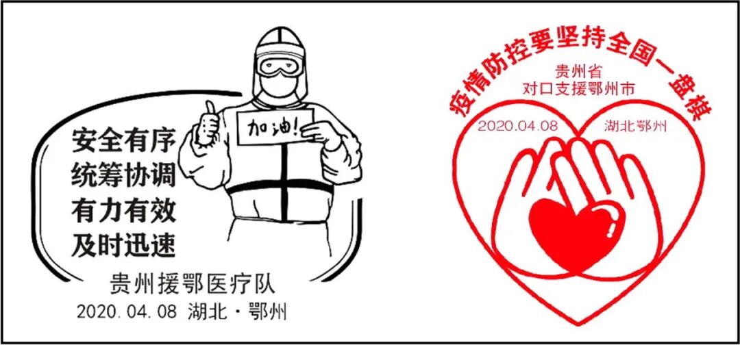 由湖北省邮政分公司、省集邮协会推出的“与湖北同在,为武汉加油”集戳寄语活动,小编曾在3月5日为您推送过,点此回顾。包括援鄂医疗队员在内的全国众多集邮者和各界民众踊跃参与,以线上选纪念封、选邮票、选纪念戳和本人签名制作个性化纪念封的体验方式,记录当下、见证历史,共同向最美逆行者和一线奋斗者致敬,为英雄的湖北人民、武汉人民加油。4月8日起推出的“集戳本”,是本次集戳寄语线下活动阶段的实物载体。“集戳本”共盖有疫情防控工作重要指示、批示、讲话精神宣传戳和全国援鄂医疗队、火神山医院、雷神山医院、方舱医院、各省对口支援湖北各市纪念戳70枚,以此铭记必将载入中华民族英雄史册的新冠肺炎疫情防控斗争历程,致敬慷慨赴荆楚、白衣作战袍,用医者仁心和血肉之躯托起武汉人民、湖北人民生命之舟的最美逆行者,感谢冲锋在前、英勇奋战的广大党员干部,不惧风雨、坚守一线的千万战斗者和英雄的武汉人民、湖北人民,弘扬伟大的战“疫”精神。● 有意收藏“与湖北同在,为武汉加油”集戳本的朋友,请电联湖北省集邮协会秘书处黄安平(027-83560311)● 湖北省集邮协会将充分考虑集邮者盖戳需求,并热情提供相关服务。需加盖上述邮戳者,请自备封片卡(因人手有限,每位集邮者限盖20枚封片卡),在6月8日前挂号套寄至湖北省集邮协会黄安平收(详细地址:武汉市江汉区江旺路22号;邮编:430023),并请随函写明具体加盖需求和本人姓名、详细通信地址、邮政编码、手机号等信息。盖好戳后的封片卡,将挂号套寄回本人(一律不办理实寄,也不代盖日戳,请理解)湖北省各市州也将于4月8日同步启用战“疫”主题戳记。图样和具体加盖邮政网点如下: