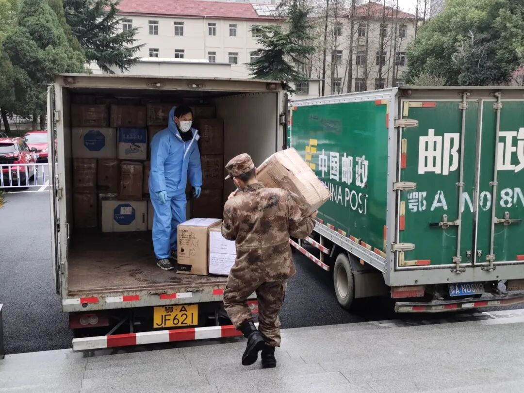“感谢邮政配合我们的工作,响应快、行动快,确保了这批海外捐赠的爱心物资能第一时间送达医护一线人员手中。”3月3日中午,湖北省军区某单位范主任对洪山区分公司服务专班成员表达谢意。此时,两辆邮车满载着华科法国校友会从海外筹集而来的9350件医用防护服,从该单位仓库出发,向武汉邮区中心局的方向疾驰而去,及时为省内7个地市的19家医院的医护人员送上“弹药”。