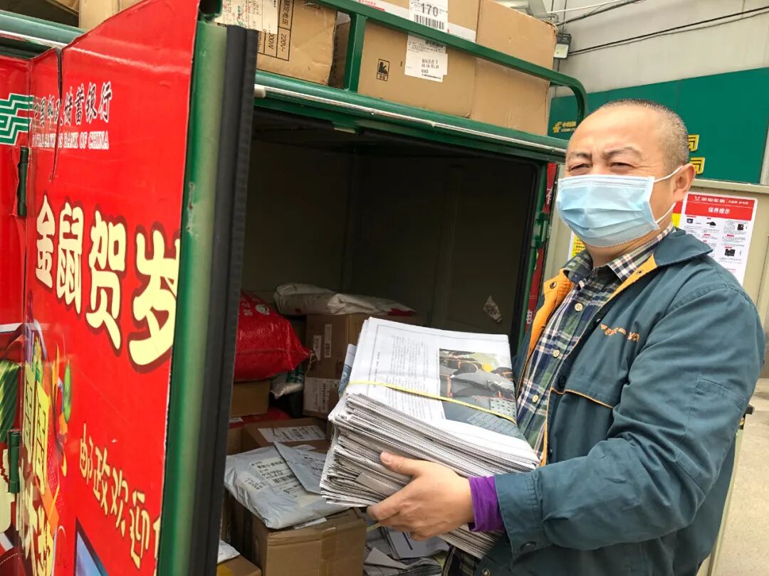 由于服务区域实行严格的军事化管理,200份报刊的投递任务对于经验丰富的毛正庆来说,并不轻松。每天9点30分,毛正庆驾驶已提前备案登记的邮车,载着消毒过的重点报刊准时出现在医院门口,向值守的士兵出示医院出入证,测量体温,登记信息,人、车、报纸进行二次消毒后才能顺利进入医院。接着,到达医院综合办公楼的毛正庆会致电医院联系人,在指定地点等待接收人前来领取报纸,经过当面核对身份和报纸份数,确认无误后签收。近一个多月来,毛正庆每天重复做这些“功课”,从医院出来时穿着防护服的他早已全身湿透。
