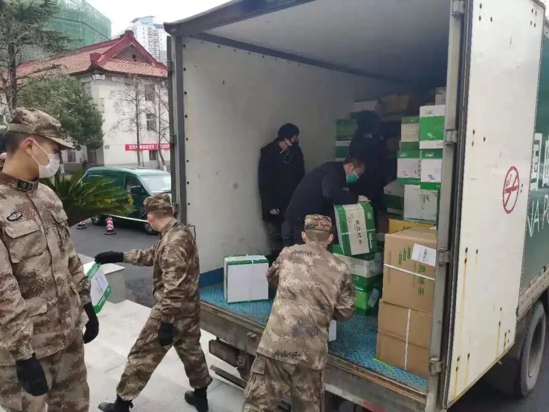 作为驻军部队的牵头单位,湖北省军区负责筹措和调配各省军区、地方政府、爱心企业、公益组织多方增援的防疫物资。这些重要物资不仅要及时“发出去”,还要顺畅“运进来”,邮政在每一个环节都为省军区提供了有力的支撑。2月11日,正值武汉疫情防控胶着对垒的关键时刻,武珞路投递站进口了449件从恩施发来的防疫物资,收件地址正是湖北省军区。由于外地返乡员工滞留,加之当天还有数百件医用物资要发往多家医疗机构,站点投递压力大。为全力做好军队的服务支撑,洪山区分公司迅速抽调机关、车队数名骨干组成突击队,紧急调配出一辆5吨邮车,开通“绿色通道”,以最快的速度将这批急需物资送达省军区,高效的服务得到了省军区工作人员的一致认可。