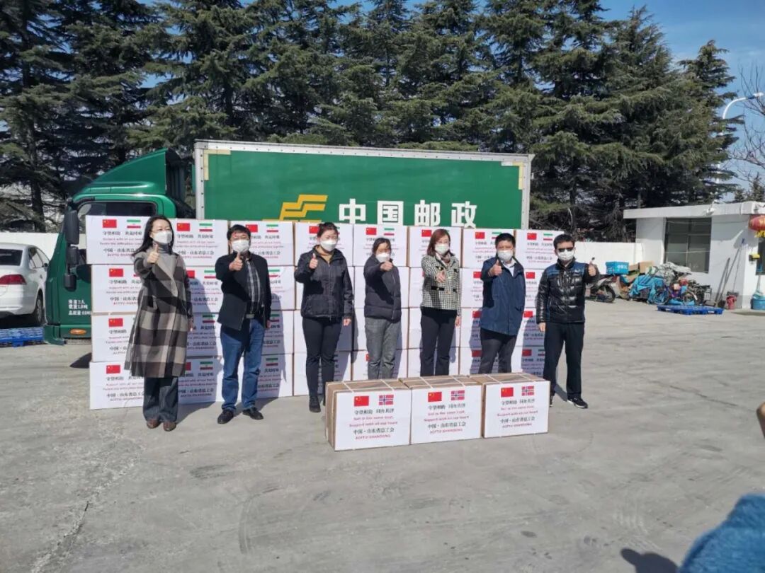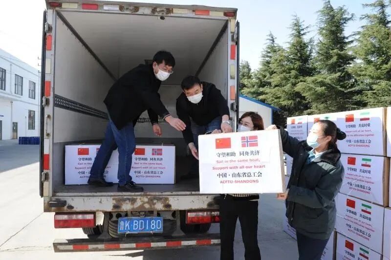 3月24日,包装上贴着“丝路两端,守望相助”“相知无远近,万里尚为邻”等标签的13万只口罩顺利发出。3月27日,向伊朗、挪威捐赠的11万只口罩也顺利发出。4月9日,山东省总工会通过山东邮政发出的最后一批国际防疫援助物资顺利到达挪威。山东省总工会与山东邮政在防疫抗疫一线携手共同战斗,成功把工人阶级的友好情谊传递到海外。