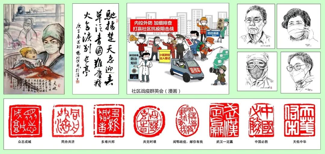 展示10位各地集邮者创作的抗“疫”题材书画(篆刻)、漫画、钢笔画等作品约160件。
