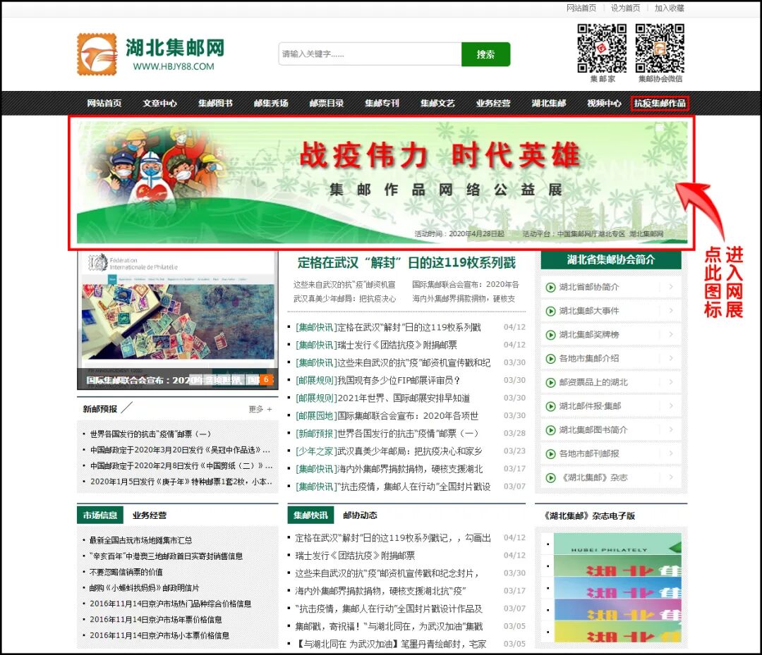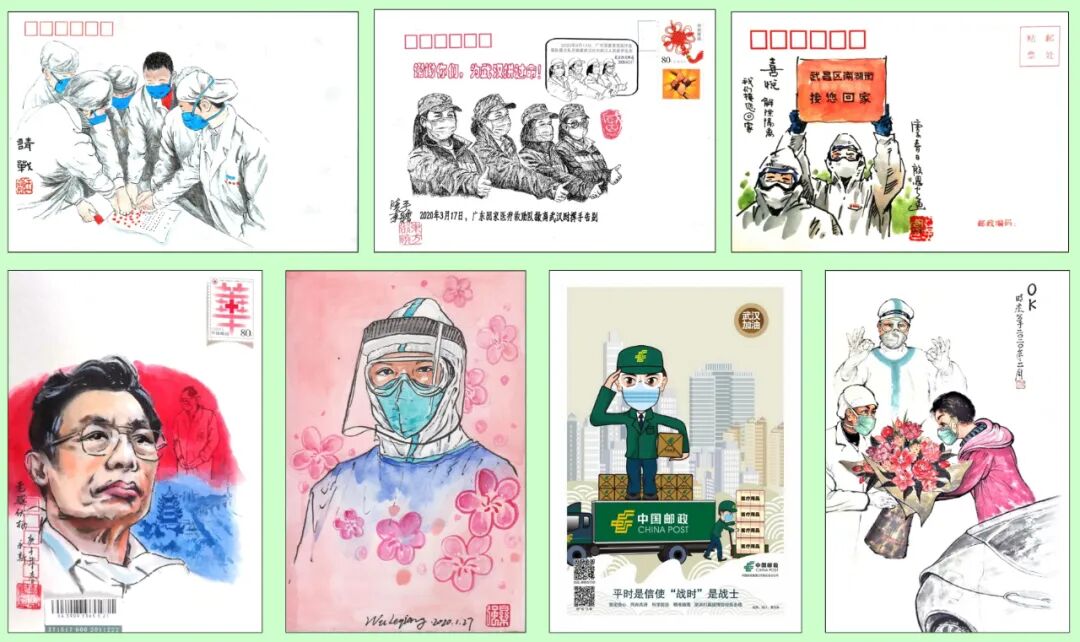 展示全国各地20余位集邮者创作的510余枚抗“疫”题材手绘、设计或剪贴画封片作品。