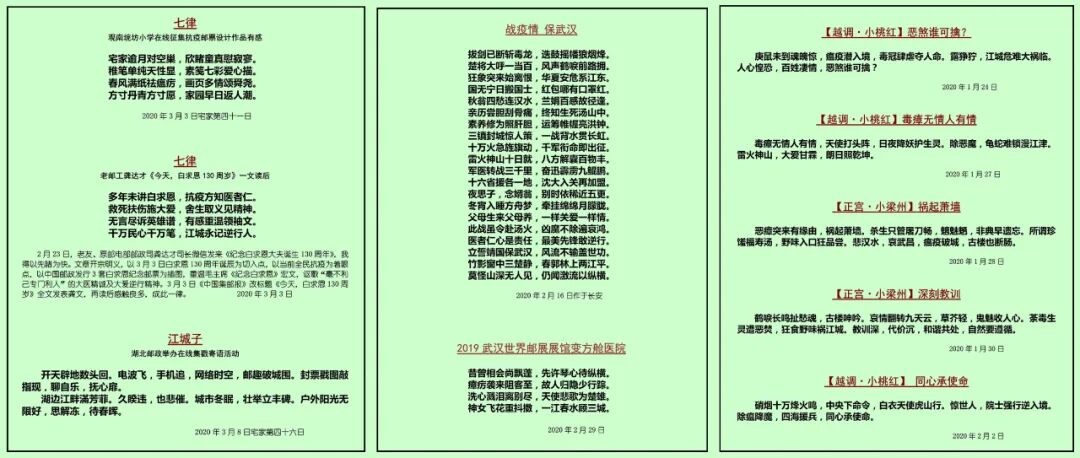 展示各地7位集邮者创作的抗“疫”题材诗、词、曲等约70首。
