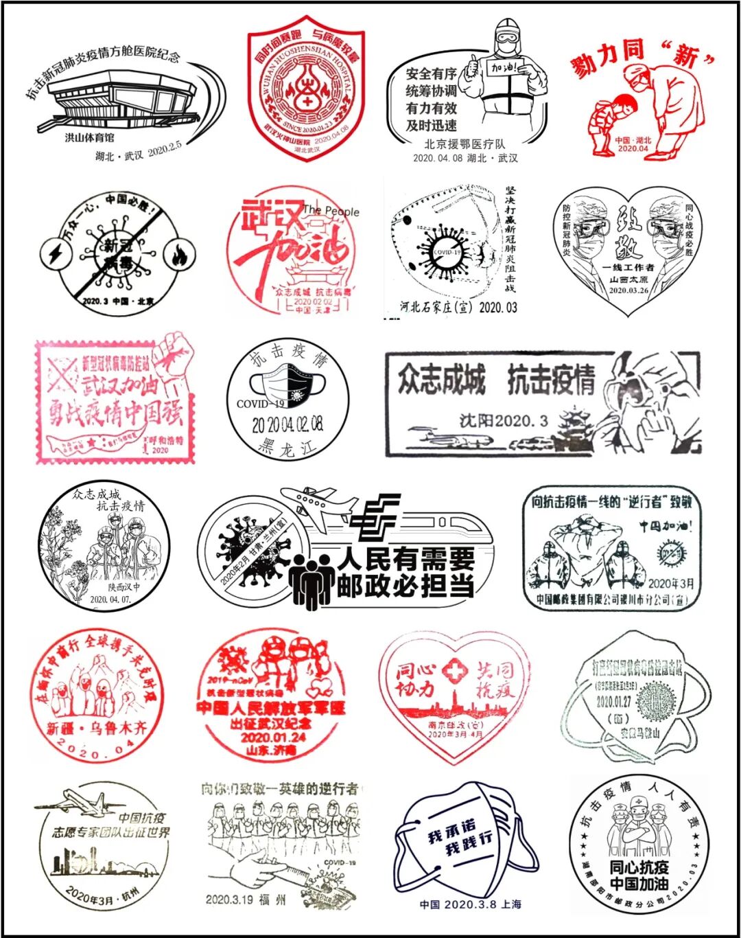 展示各省、自治区、直辖市邮政部门启用的抗“疫”题材戳记670余枚。
