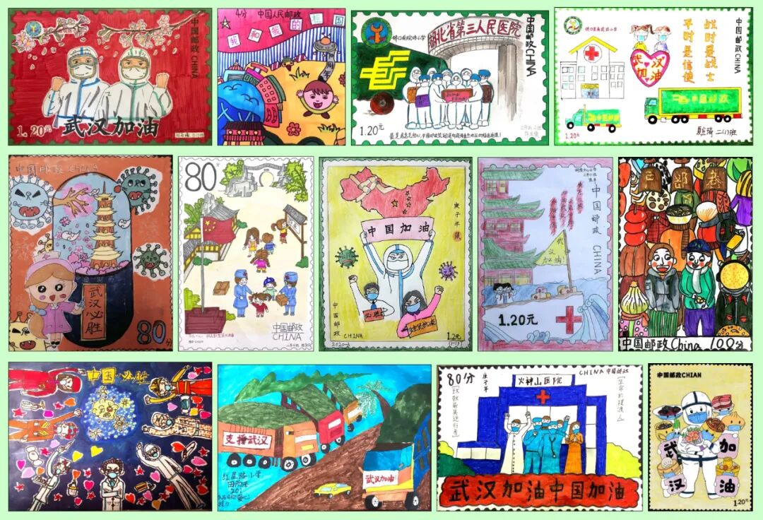 展示7所“青少年集邮活动示范基地”学校孩子们设计的抗“疫”题材优秀邮票图稿100余幅。