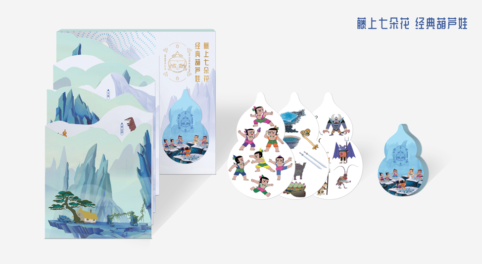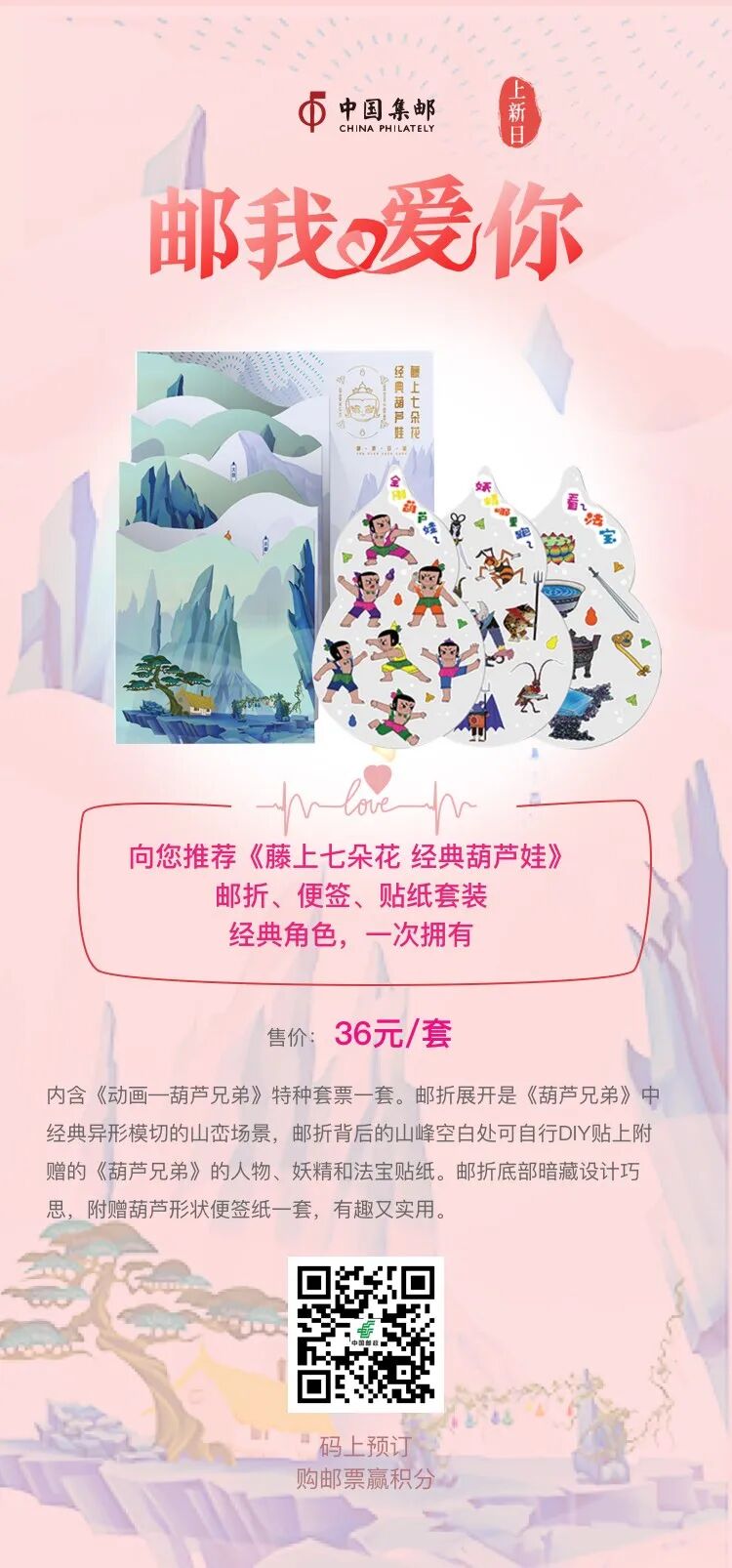 为此,中国集邮总公司推出《藤上七朵花 经典葫芦娃》 邮折、便签、贴纸套装。邮折底部拥有设计巧思,暗藏葫芦形状便签纸一套,有趣又实用。