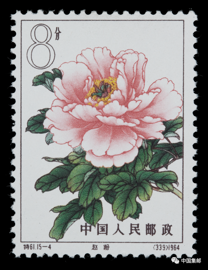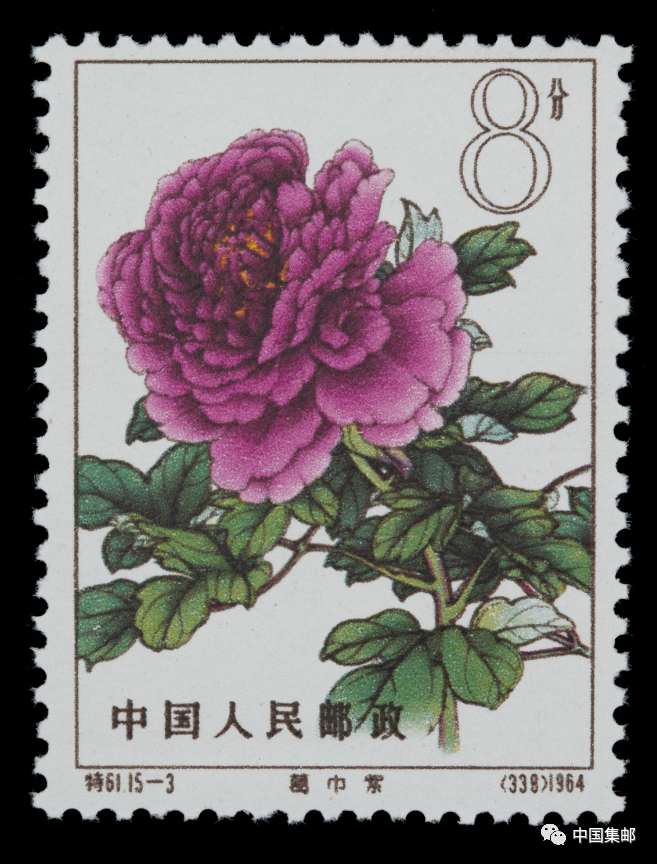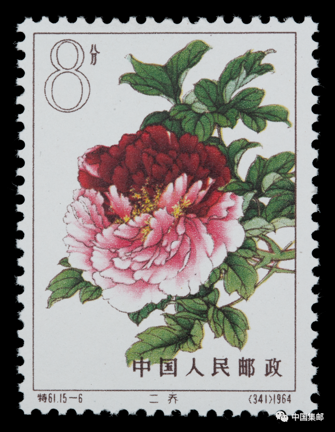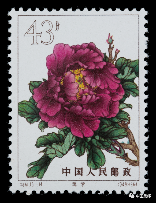 为了展示我国牡丹芳容,1964年8月5日,中国邮政发行了特61《牡丹》特种邮票,全套15枚同时发行小型张1枚。16幅画面中共展现17个牡丹品种,均是牡丹中的典型,邮票采用我国著名花鸟画家田世光创作的原画进行设计,深受集藏爱好者的喜爱。
