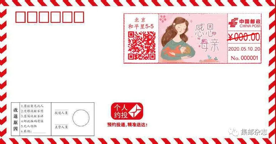为了方便大家的收藏,《集邮》杂志微店为大家上架了该枚邮资机宣传戳的约投挂号实寄封。识别上方二维码即可跳转预订。